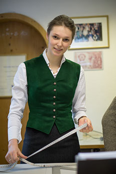 Als Chefin ist sie ausgezeichnet bei den Anproben und passt jedem Kunden sein Lieblingsstück auf den Leib an. Mit viel Herzblut, Erfahrung und Gespür für die Kunden und ihre Anliegen leitet sie das Familienunternehmen erfolgreich und gibt ihr Wissen an die Kinder weiter.